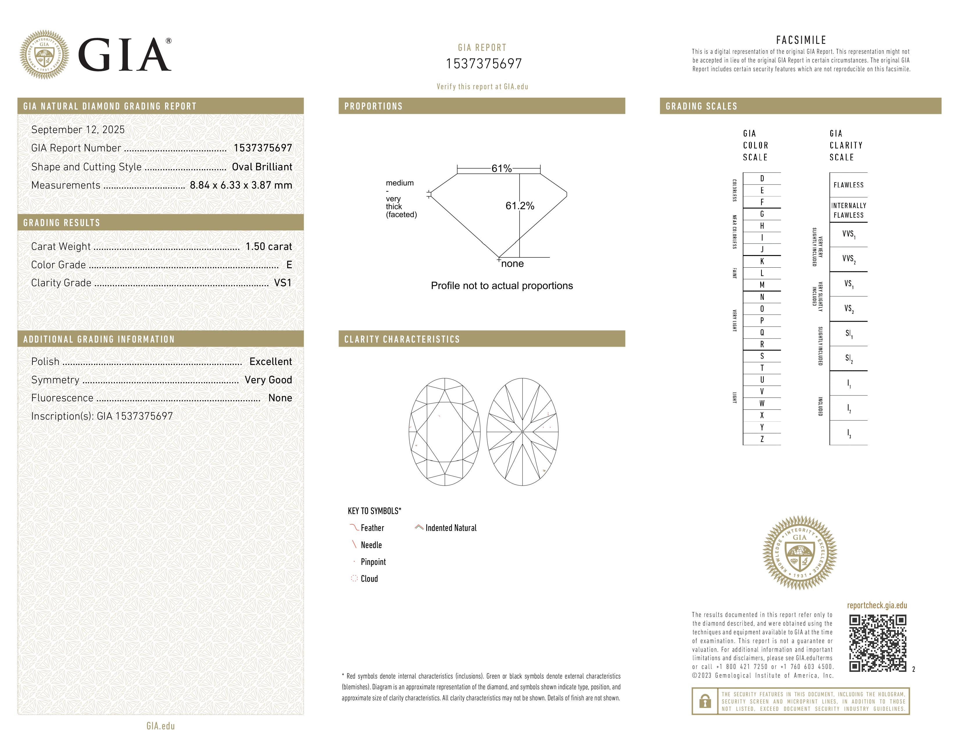 Роскошный бриллиант в 1.50 карат, формы овал . Размер 8.84x6.33x3.87 полностью соответствует установленным стандартам для этой формы и массы камня. Превосходная огранка делает бриллиант визуально крупнее на 5-7%, чем он есть на самом деле. Флюоресценция полностью отсутствует, что встречается лишь у 15% от всех добываемых бриллиантов. Фантастически выгодная цена. Высокая ликвидность на вторичном рынке.