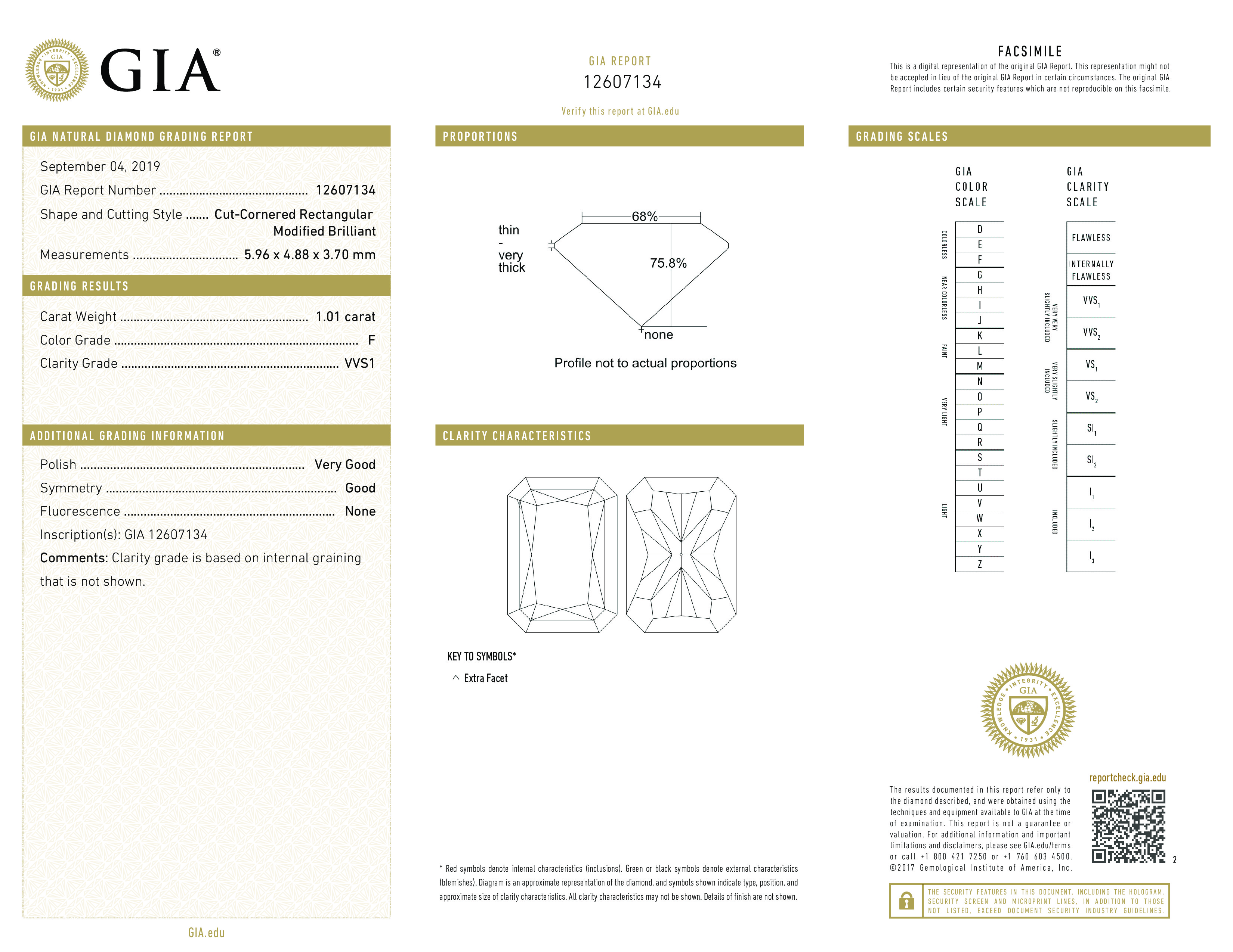 Роскошный бриллиант в 1.01 карат, формы радиант . Размер 5.96x4.88x3.7 полностью соответствует установленным стандартам для этой формы и массы камня. Флюоресценция полностью отсутствует, что встречается лишь у 15% от всех добываемых бриллиантов. Фантастически выгодная цена. Высокая ликвидность на вторичном рынке.