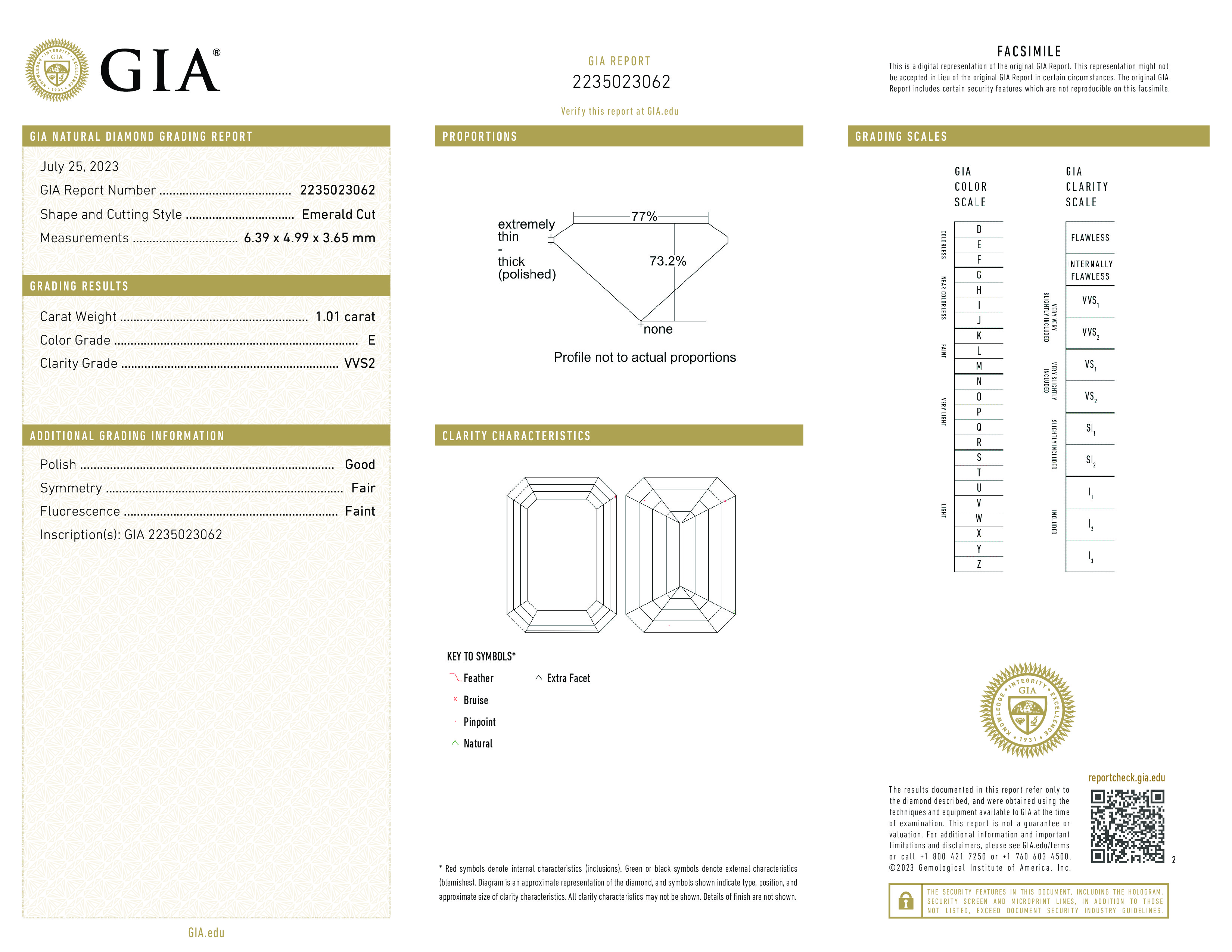 Роскошный бриллиант в 1.01 карат, формы изумруд . Размер 6.39x4.99x3.65 полностью соответствует установленным стандартам для этой формы и массы камня. Небольшая флюоресценция находится в рамках нормы. Фантастически выгодная цена. Хорошая ликвидность на вторичном рынке.