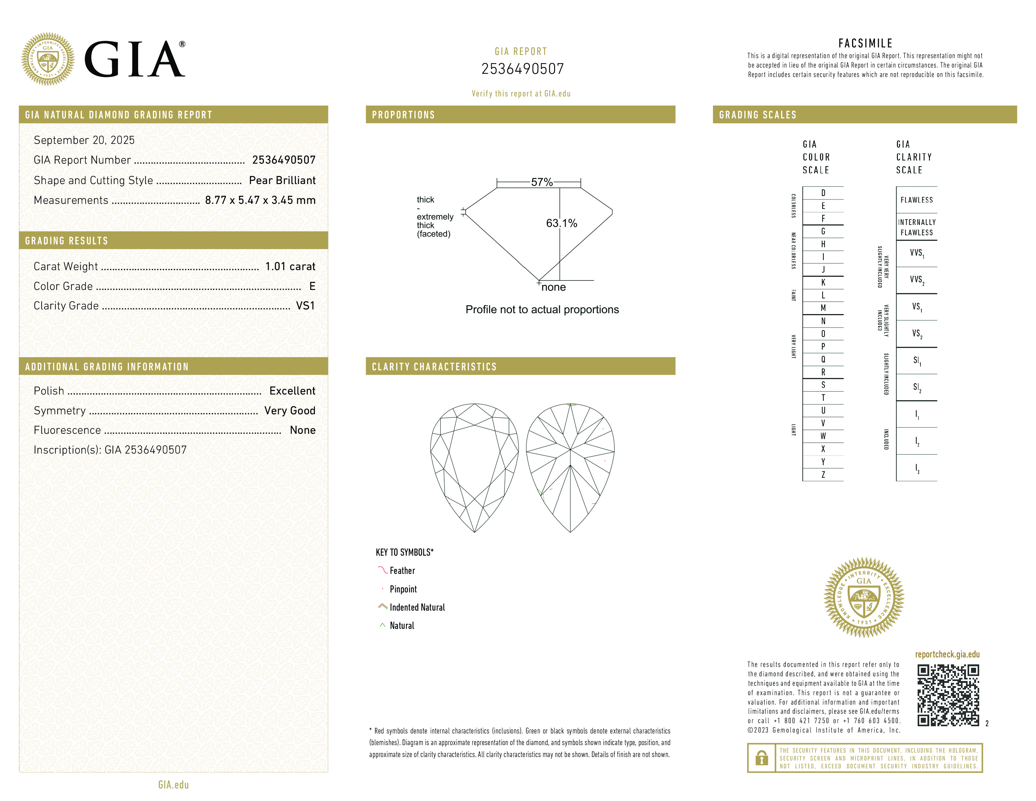 Роскошный бриллиант в 1.01 карат, формы груша . Размер 8.77x5.47x3.45 полностью соответствует установленным стандартам для этой формы и массы камня. Флюоресценция полностью отсутствует, что встречается лишь у 15% от всех добываемых бриллиантов. Очень выгодная цена. Высокая ликвидность на вторичном рынке.
