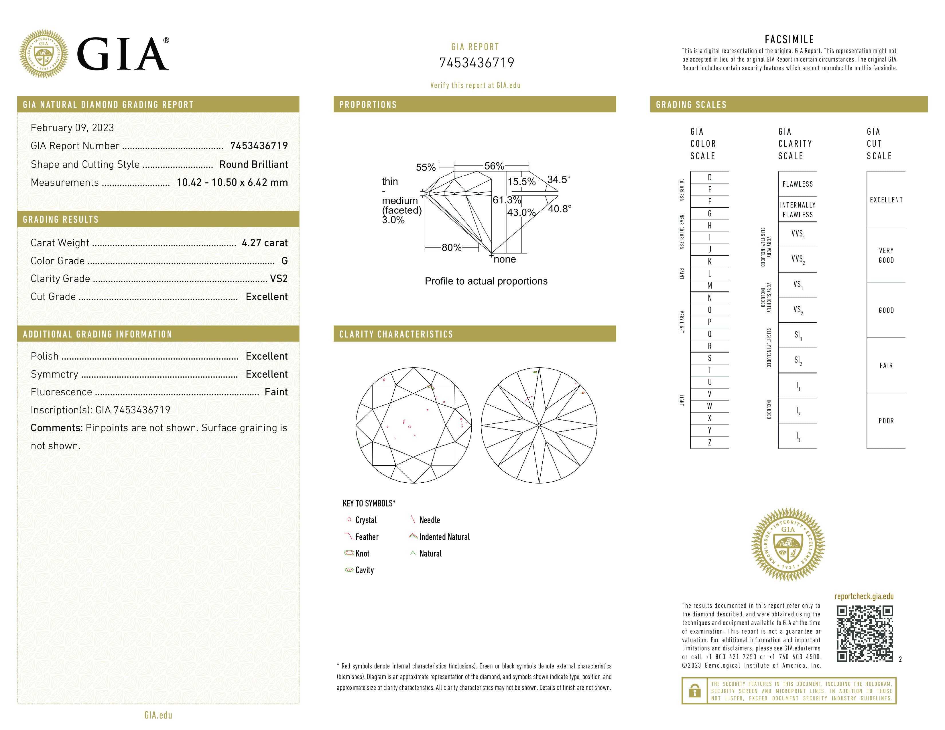 Экстраординарный бриллиант в 4.27 карат, формы круглый . Размер 10.42x10.5x6.42 полностью соответствует установленным стандартам для этой формы и массы камня. Оптимальная огранка подчеркивает и выделяет лучшие свойства этого бриллианта. Небольшая флюоресценция находится в рамках нормы. Очень выгодная цена. Хорошая ликвидность на вторичном рынке.