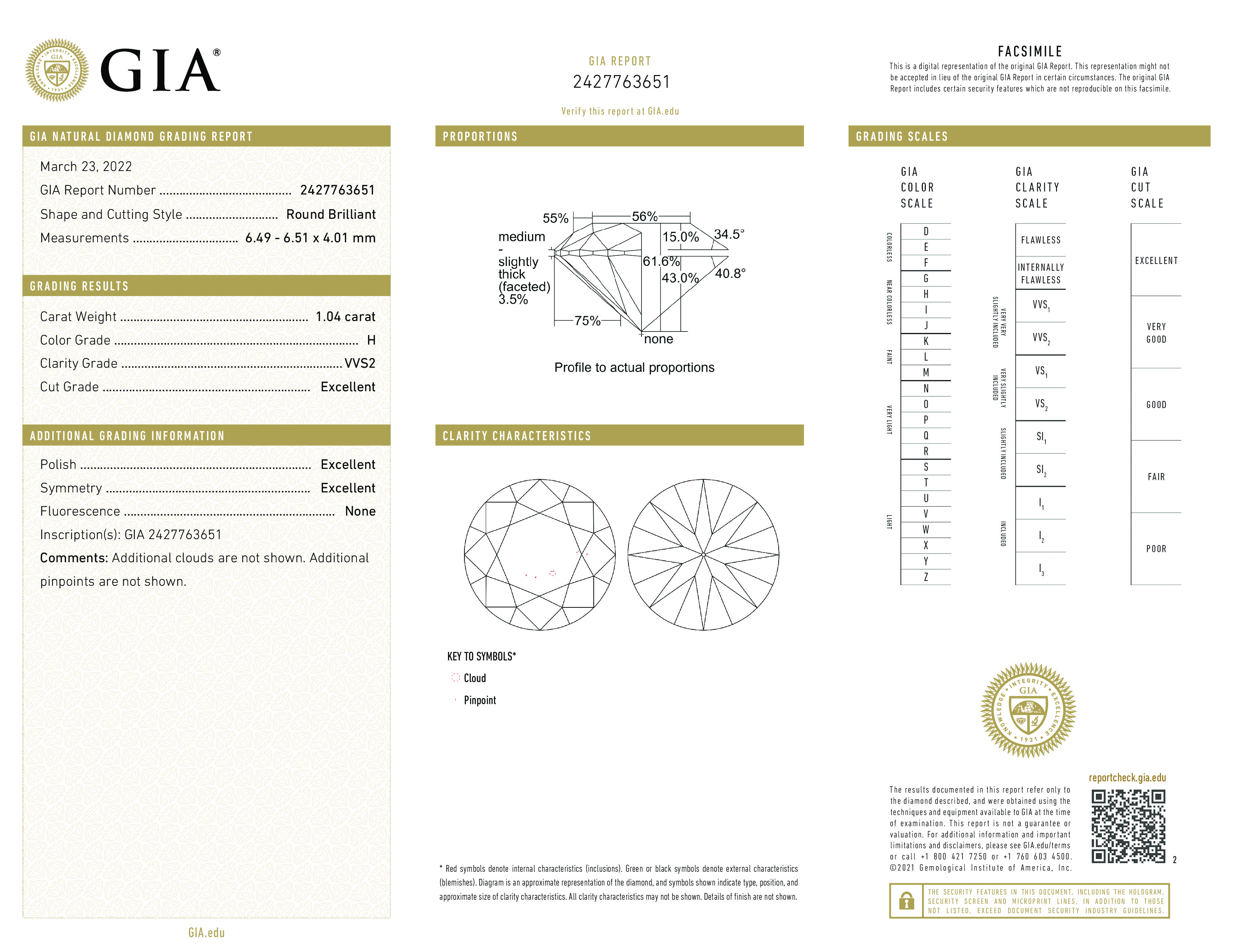 Роскошный бриллиант в 1.04 карат, формы круглый . Размер 6.49x6.51x4.01 полностью соответствует установленным стандартам для этой формы и массы камня. Оптимальная огранка подчеркивает и выделяет лучшие свойства этого бриллианта. Флюоресценция полностью отсутствует, что встречается лишь у 15% от всех добываемых бриллиантов. Фантастически выгодная цена. Высокая ликвидность на вторичном рынке.