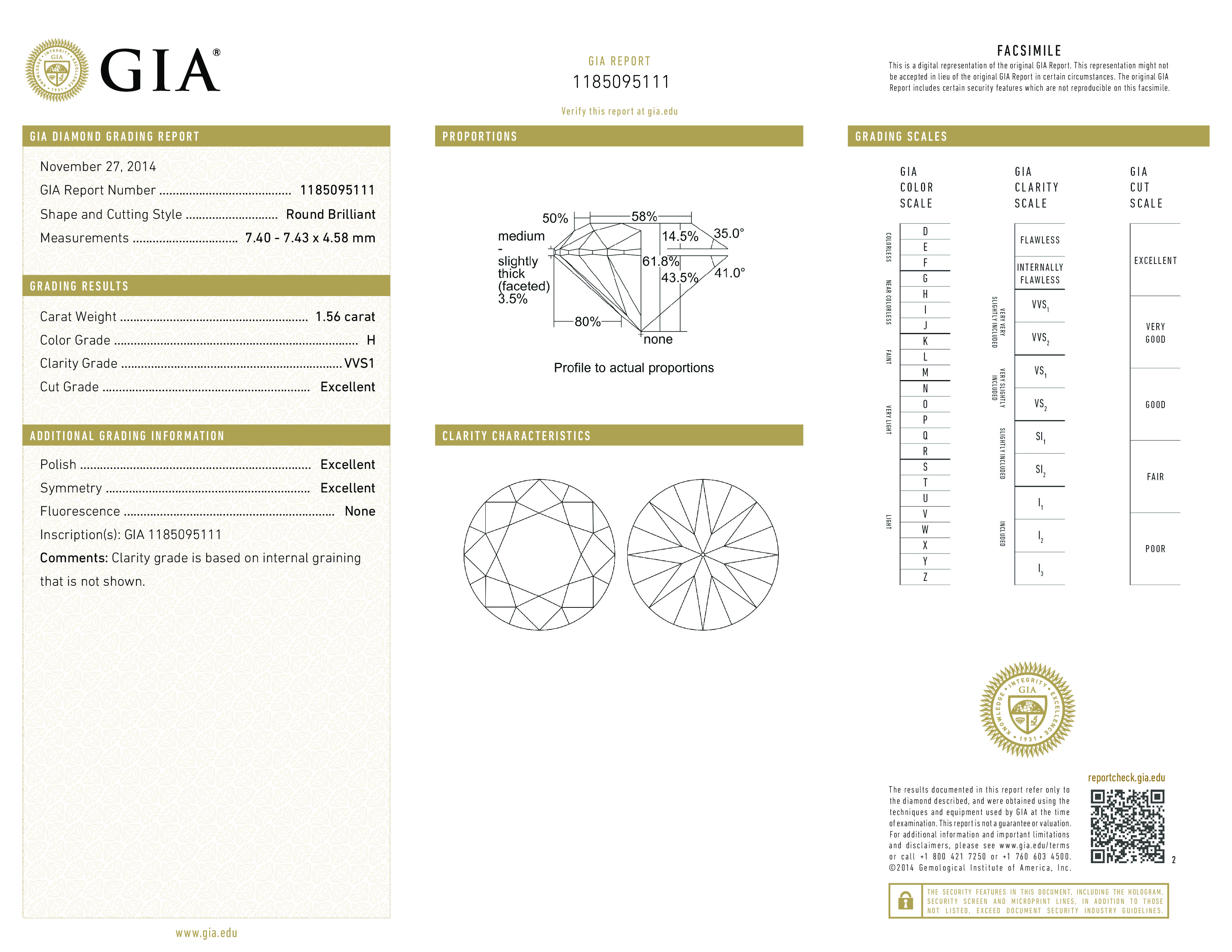 - Сертификат: GIA 1185095111