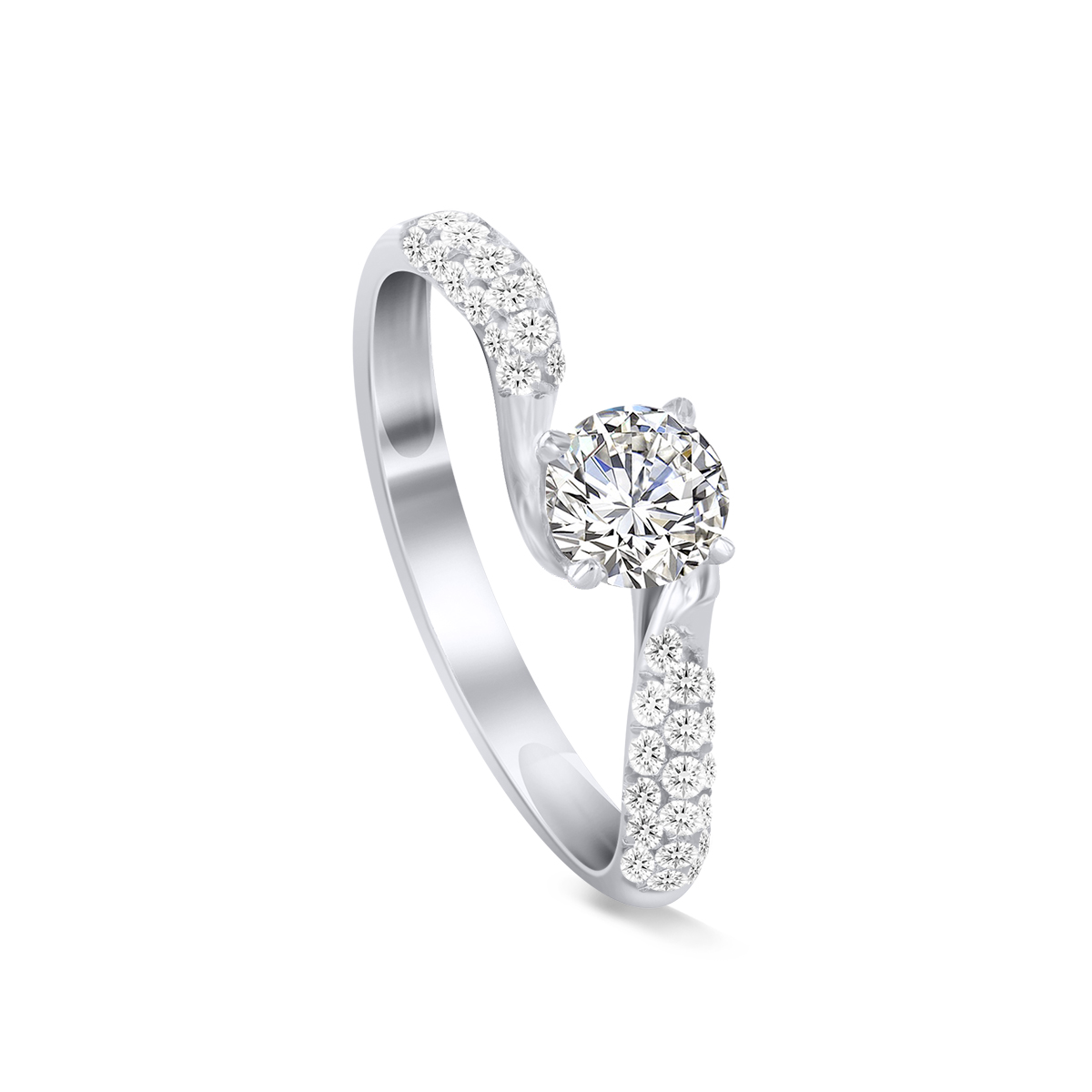 Кольцо изготовдлено из белого золота 750 пробы, а розово-пурпурный бриллиант огранки кушон, находится в окружении крупных бесцветных бриллиантов фантазийной огранки half moon.